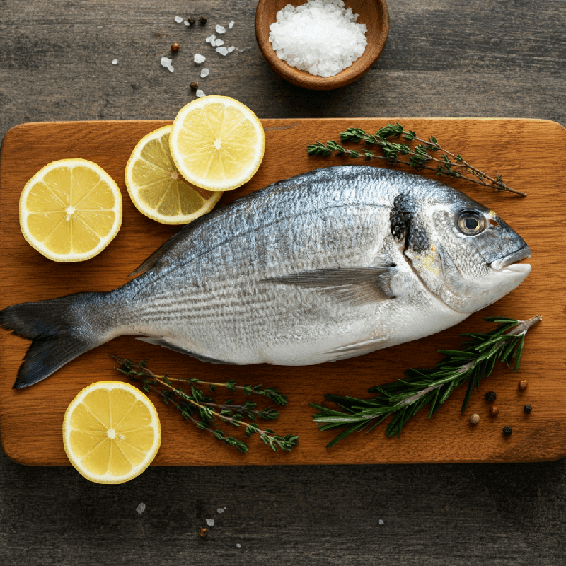 - Die Außenseiten der Doraden zweimal leicht schräg einschneiden.